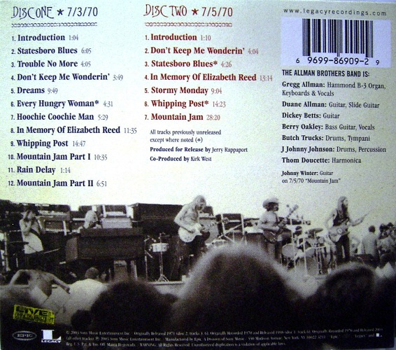 先週末の某ブートレッグ店のおまけCDは、再結成ポリスのライブです。 PR disc2は、1970年7月5日のライブが収められてます。 最近、Allman Brothers Bandにちょっとハマリ気味です。